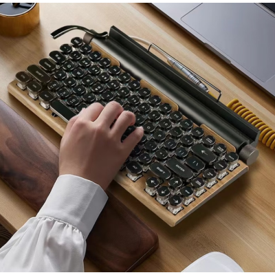 黑吉蛇机械键盘 复古打字机无线蓝牙有线双模口红蒸汽朋克手机平板iPad台式电脑家用办公商务通用外设 木纹 青轴